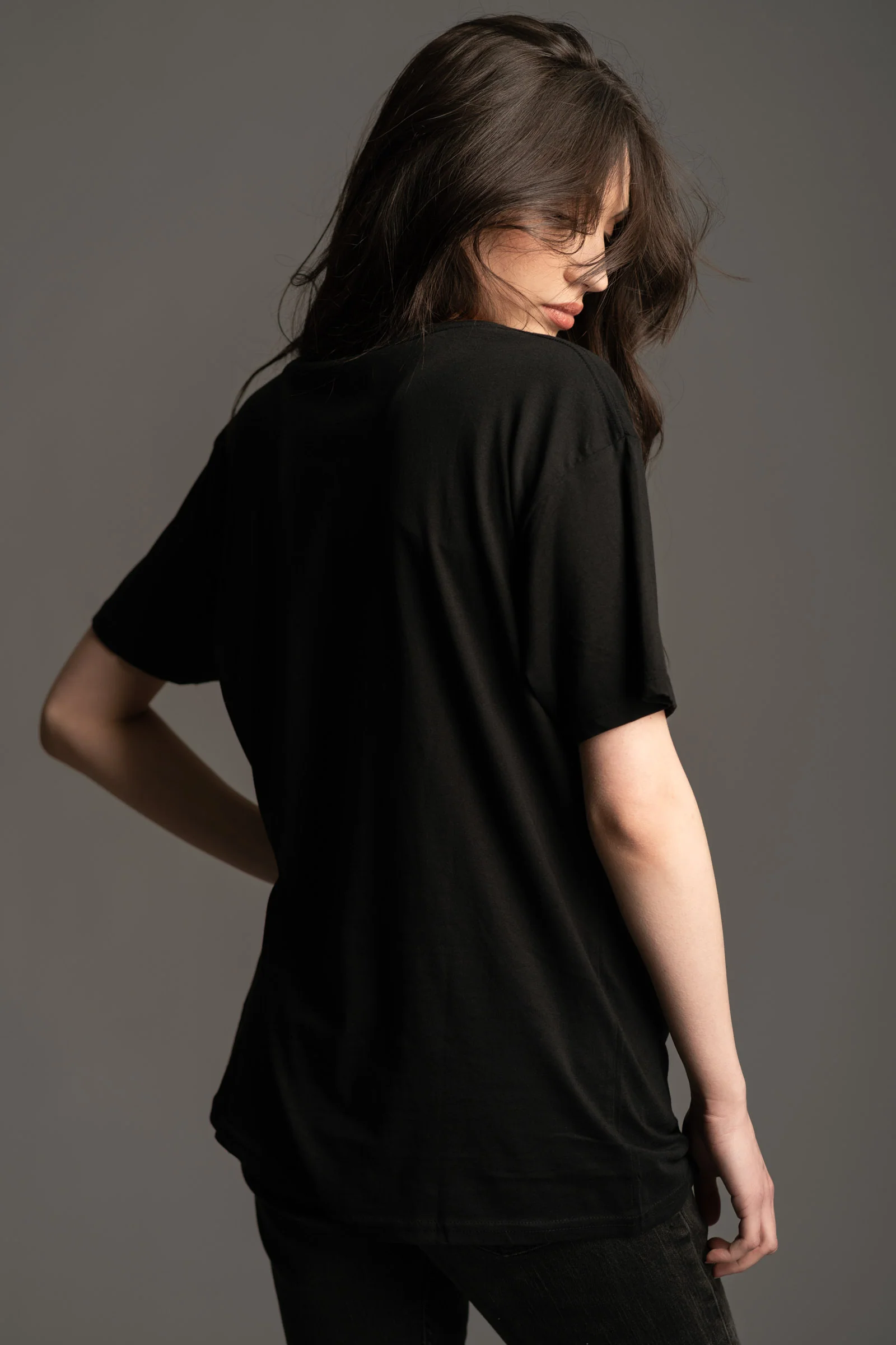 Fleetwood Mac’s softer, more whimsical side comes through in the Fleetwood Mac Dove Band Tee, rooted in their 70s folk era. This Fleetwood Mac t-shirt features floral and dove artwork with a dreamy, free-spirited feel, set against a black base that lets the graphic stand out.