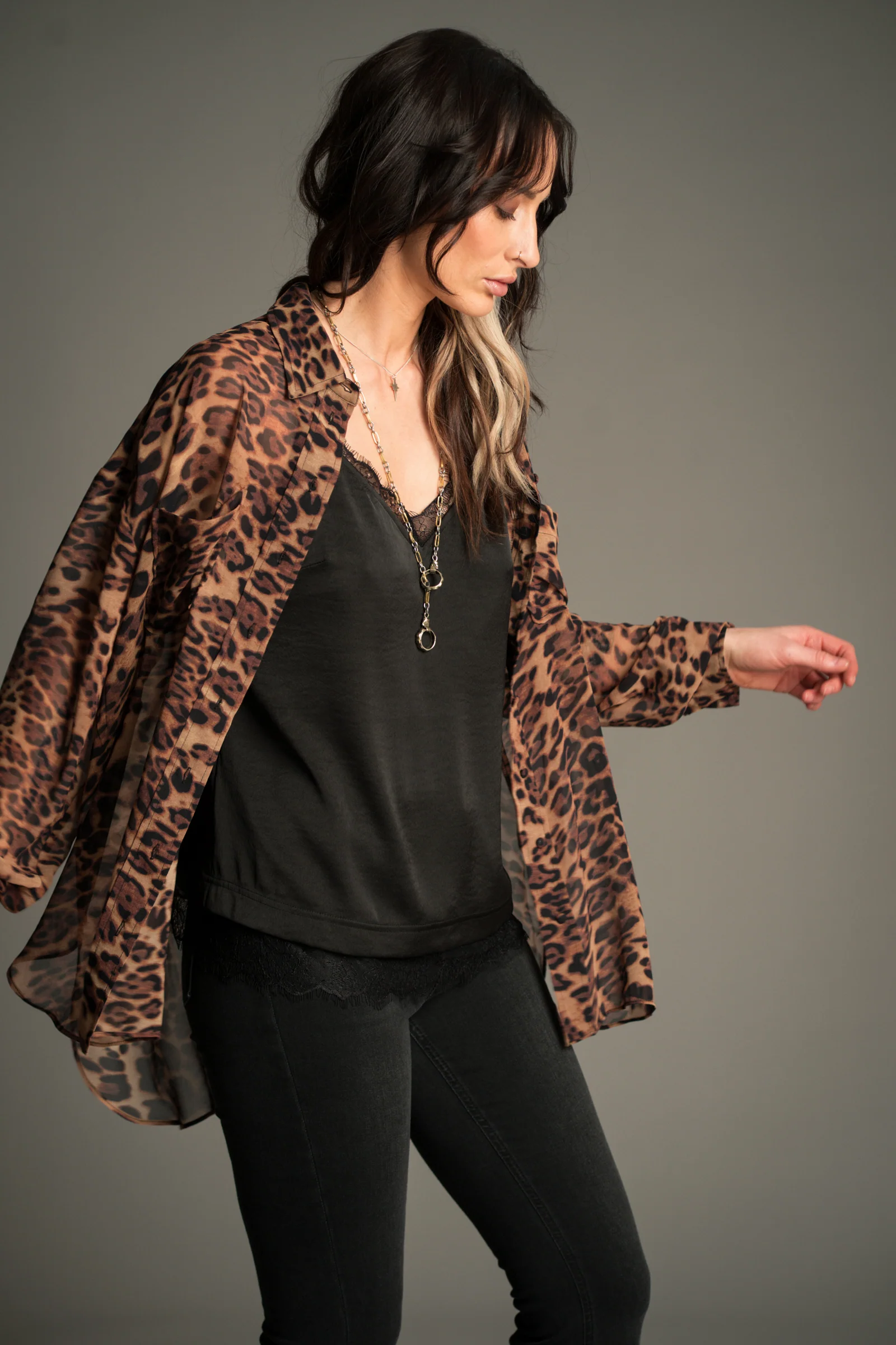 The Mosshart Leopard Chiffon Shirt is a signature piece from Little Lies - an effortless nod to the iconic Alison Mosshart, because no one rocks a shirt quite like she does. Crafted from lightweight, semi-sheer chiffon in a classic leopard print, it’s as easy to wear as it is to love. With its relaxed, boyfriend fit, this is your go-to layering essential - perfect under a leather jacket, thrown over a tee, or paired with your favourite denim.